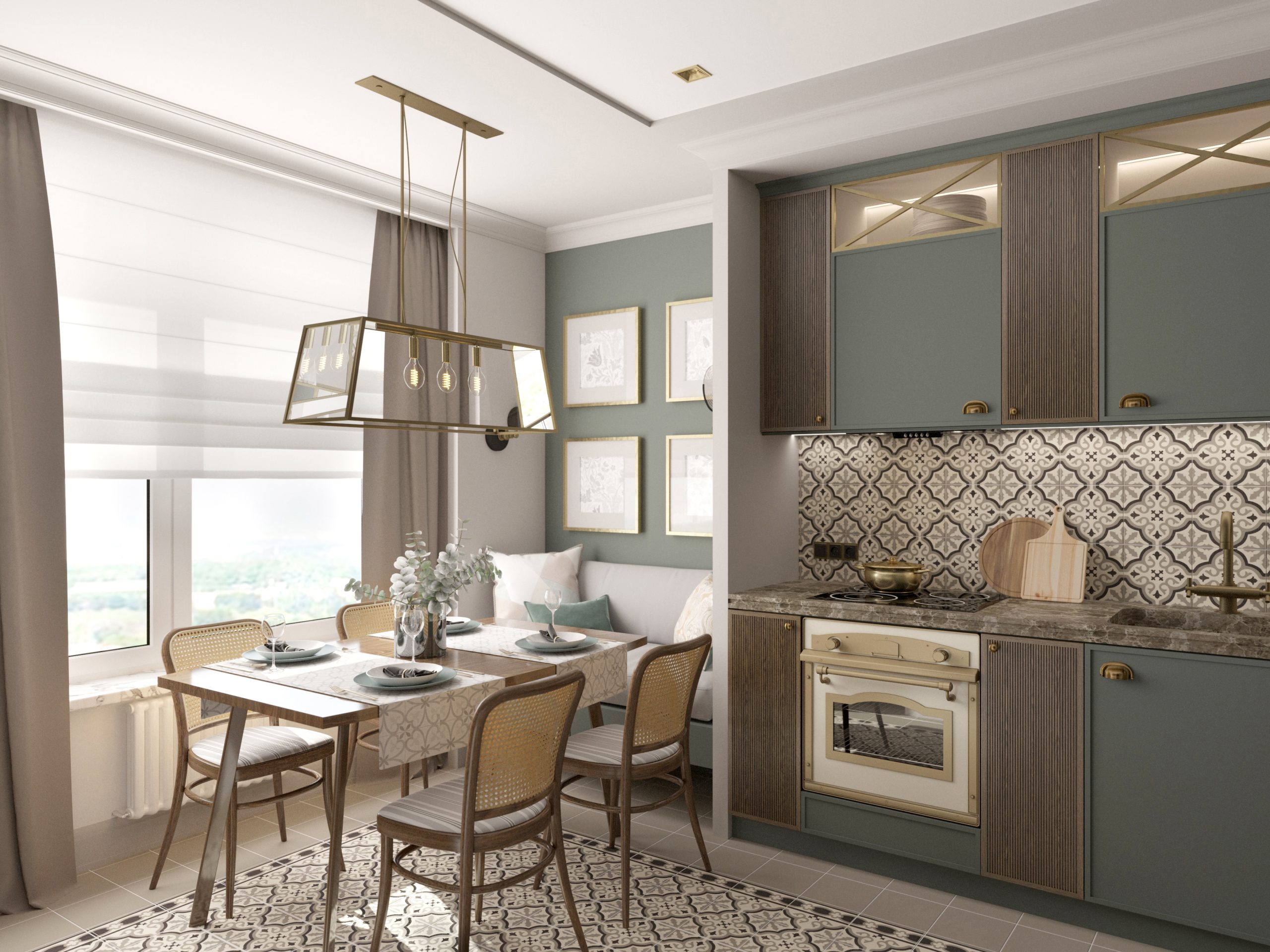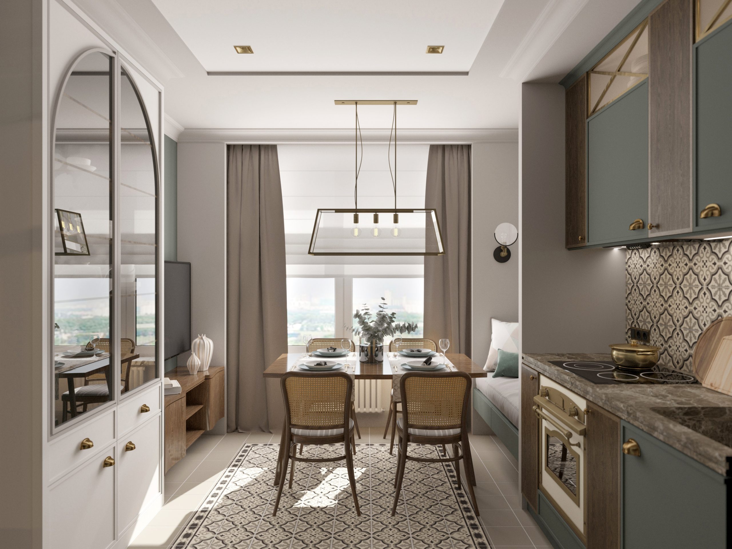 Интерьер задуман в классическом стиле, но в сочетании со всеми